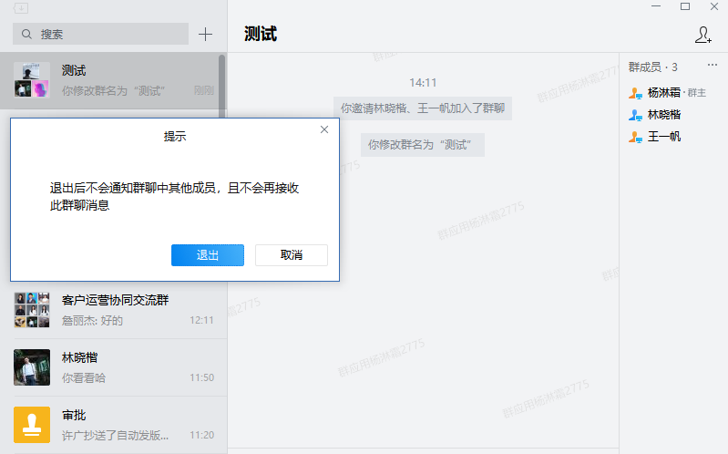 ①当群主退出企业微信内部群后,企业微信会自动挑选群成员成为群主。