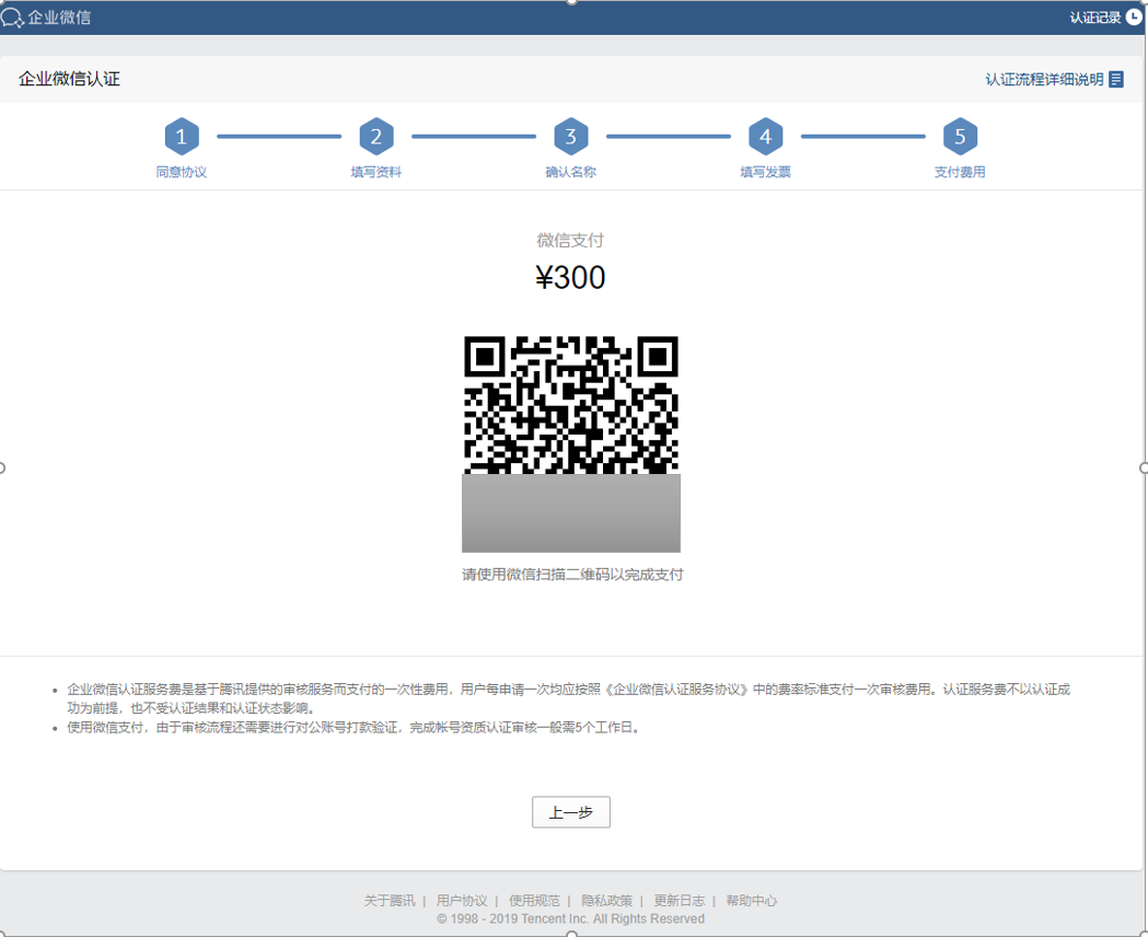 2)企业微信在收到打款后会在“企业微信认证-查看订单-认证记录”通知对应审核公司名称及联系方式;