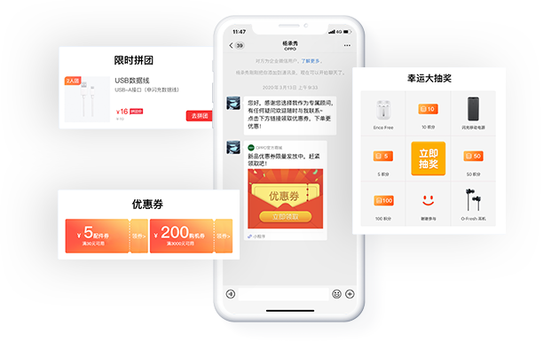 拼团、砍价、抽奖、红包等丰富的社交裂变工具为销售导购赋能,充分挖掘客户的价值,将“乐于分享”的客户发展为品牌代言人,实现业绩倍增