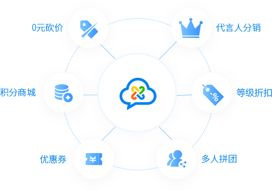 企微云提供了丰富的营销裂变工具,代言人分销、多人拼团、0元砍价、裂变优惠券等等,助力电商平台玩转社交电商,抓住时代红利,轻松实现销量倍增。如某服装品牌商家通过使用拼团+优惠券+积分抵扣等营销功能,在6.18期间做到了80多万的销售额,曝光次数400万+